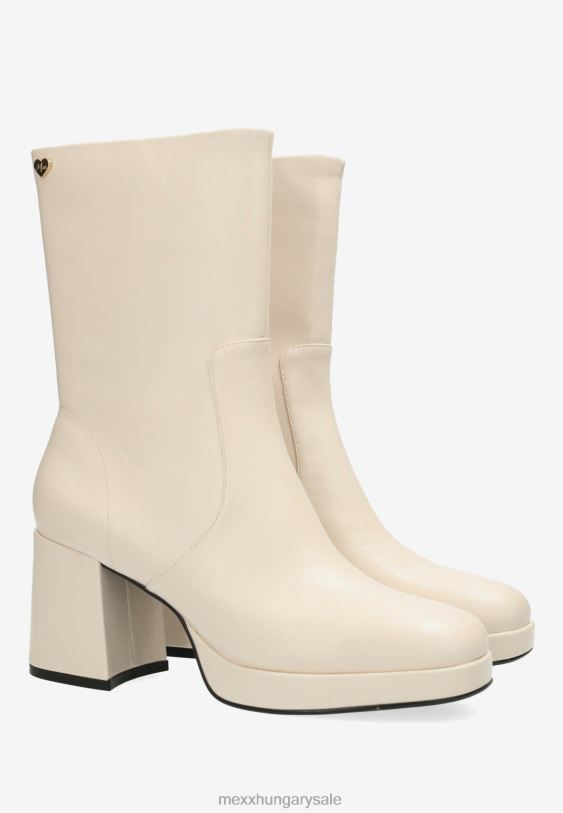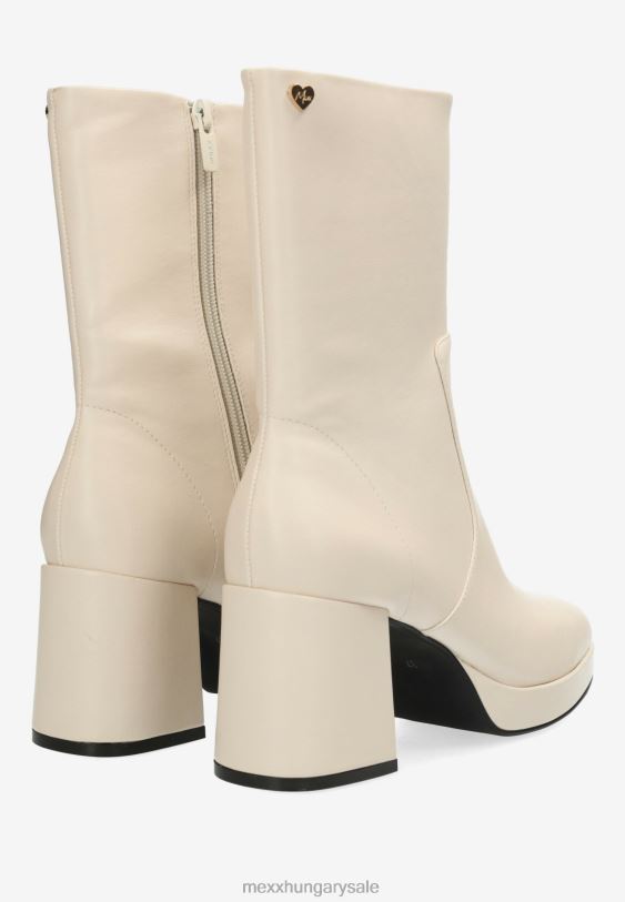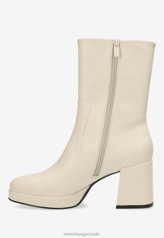 abba hangulat! törtfehér női csizma a mexx-től. lekerekített orr és cipzár. vastag blokksarok. velúr megjelenés. egy piros x a talpán a szerelmi történet aláírásaként, hogyan született meg a mexx. csókkal kezdődött. azt tanácsoljuk, hogy rendszeresen permetezze be a csizmát víz és szennyeződés ellen.