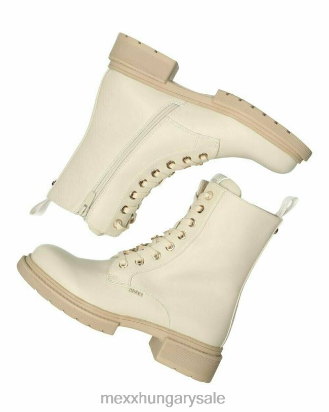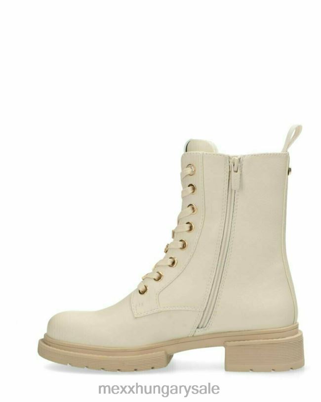 aranyos holea törtfehér motoros csizma a mexx-től hölgyeknek. a bokacsizmán fűzős fém bűbáj található. belül cipzár is van. durva profilú talp. rendszeresen permetezze be a cipőt víz és szennyeződés ellen.
