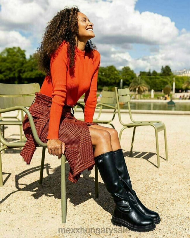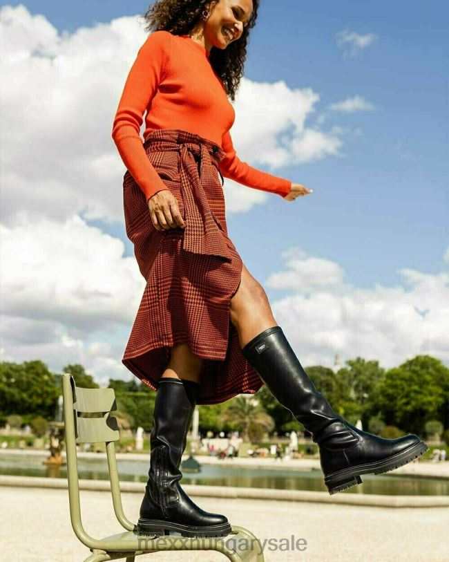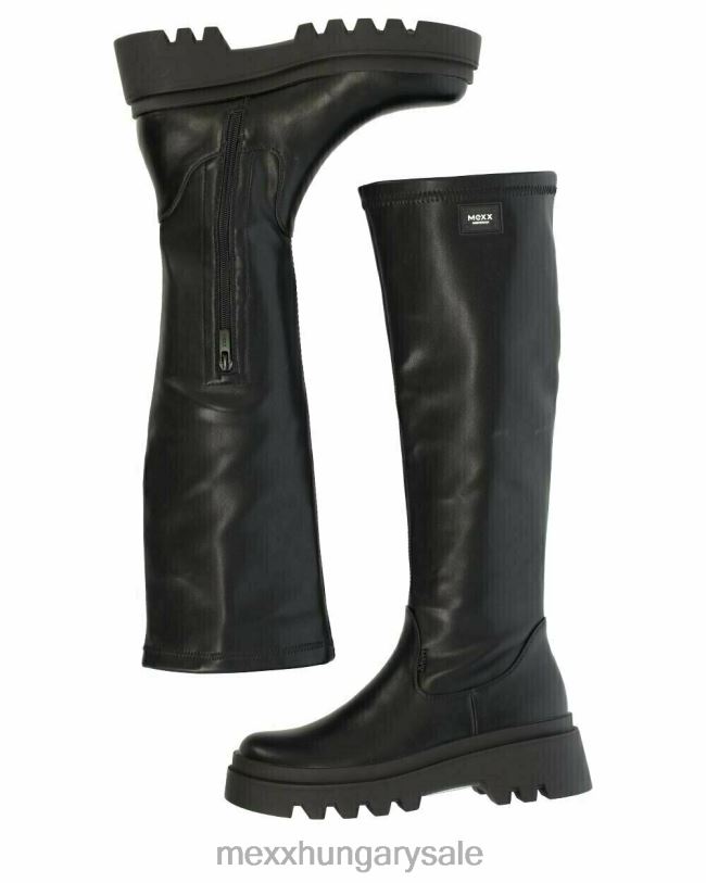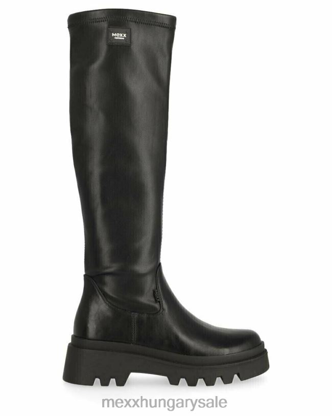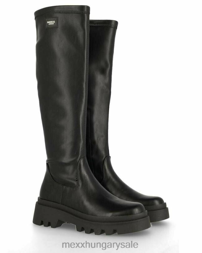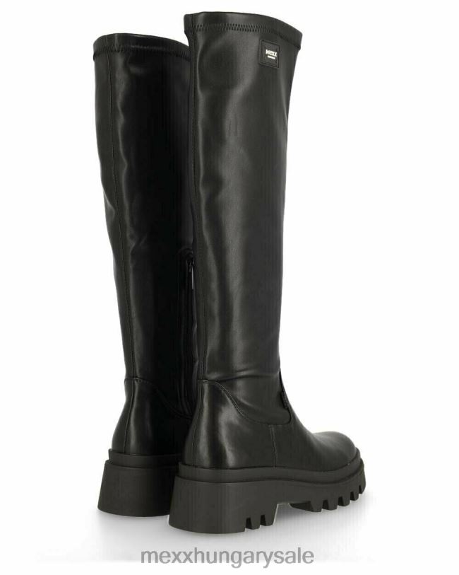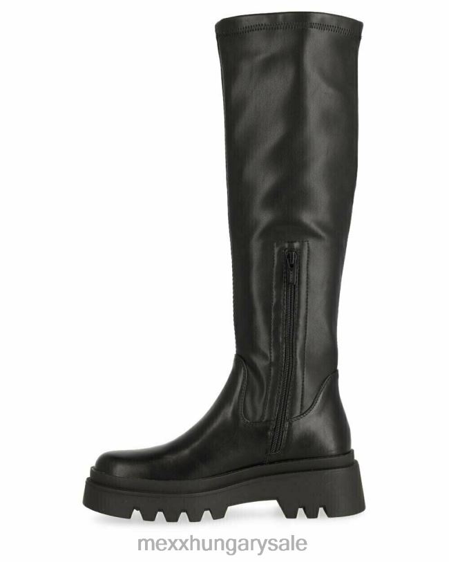strapabíró magas fekete karlijn csizma a mexx-től nőknek. a csizma térd alá ér és szorosan illeszkedik. belül van egy fél cipzár is. durva profilú talp. rendszeresen permetezze be a cipőt víz és szennyeződés ellen.