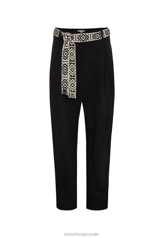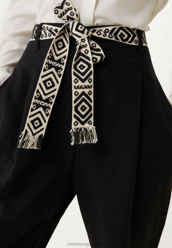 vásárolja meg ezt a fekete nadrágot online a hivatalos mexx webshopon. ez a nadrág 60% viszkózból, 40% vászonból készült, normál szabású és magas derekú. ez az elem szép kiegészítője nyári ruhatárának.