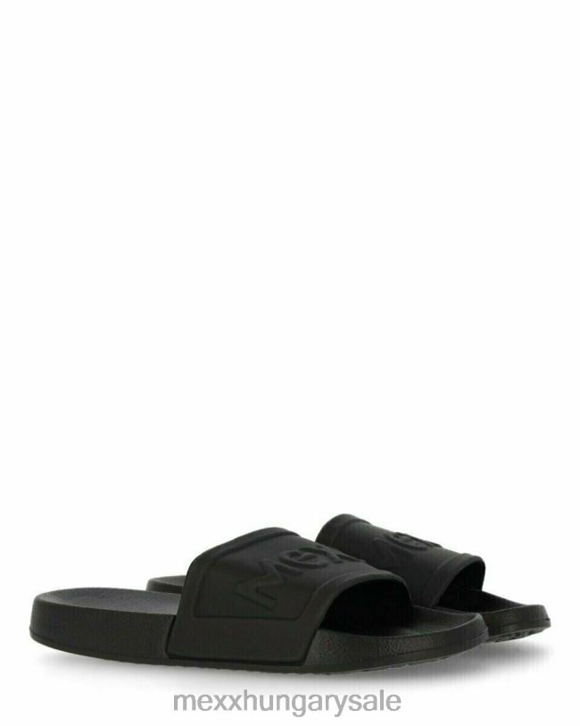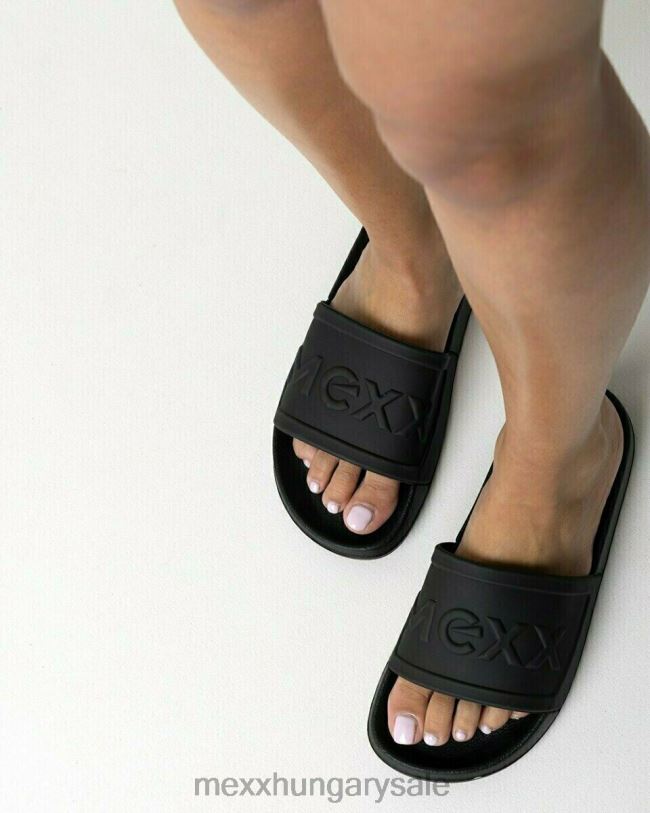 fekete papucs szintetikus anyagból. a papucsot könnyedén a lábára csúsztathatod. rendszeresen permetezze a papucsot víz és szennyeződés ellen.