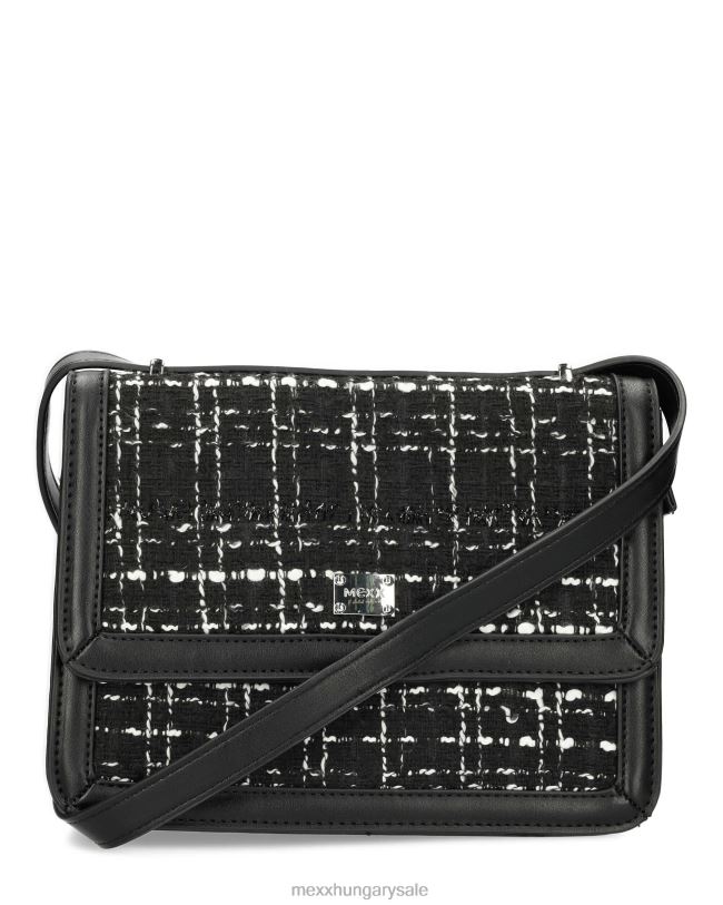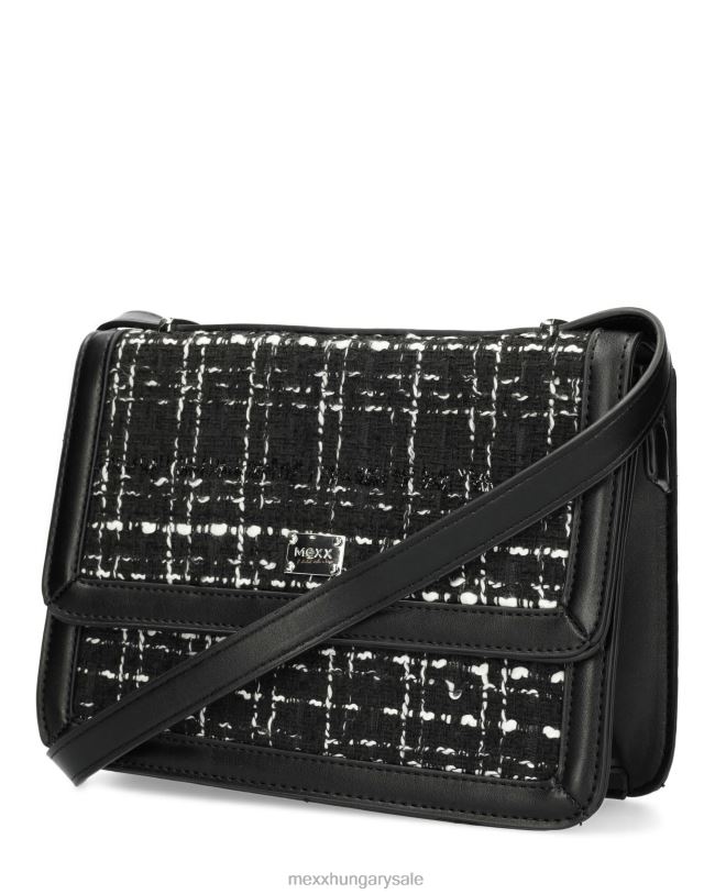 XV8H6426 nők Mexx tweed flapover táska fekete